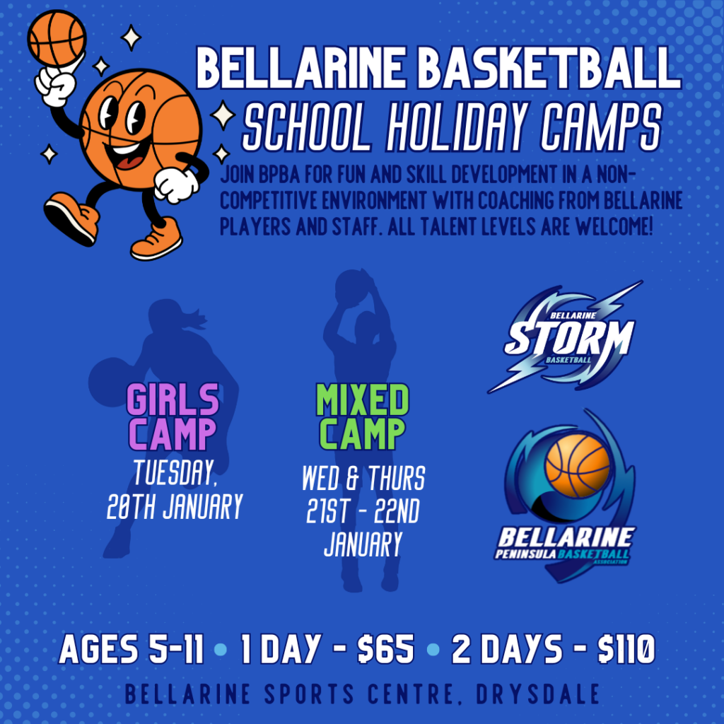 Bellarine Basketball Holiday Camps are designed to provide players 5 – 11 years old with 1-2 days of fun, learning and development in a non-competitive environment.